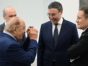 Рабочая поездка председателя правительства России Михаила Мишустина в Саров. Справа налево: генеральный директор госкорпорации "Росатом" Алексей Лихачев, министр науки и высшего образования России Валерий Фальков и ректор МГУ имени М.В. Ломоносова Виктор Садовничий во время осмотра учебных корпусов филиала МГУ имени М.В. Ломоносова.