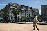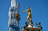 Виды Батуми. Жанровая фотография. Фонтан "Нептун" на фоне высотки с колесом обозрения на фасаде.