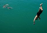 Виды Батуми. Жанровая фотография. Мужчина прыгает с пирса у Черного моря.