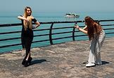 Виды Батуми. Жанровая фотография. Девушки фотографируются на набережной у Черного моря.