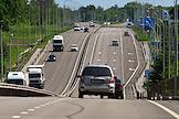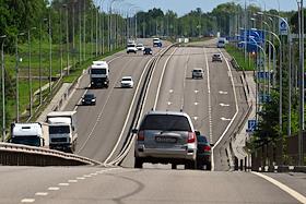 Ситуация в Белгородской области во время проведения специальной военной операции Вооруженных Сил России на Украине. Жанровая фотография. Автомобили на трассе за городом.