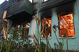 Ситуация в Белгородской области во время проведения специальной военной операции Вооруженных Сил России на Украине. Жанровая фотография. Пожар в жилом доме после обстрела.