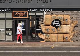 Ситуация в Белгородской области во время проведения специальной военной операции Вооруженных Сил России на Украине. Жанровая фотография. Магазин по продаже кофе и цветов.