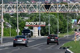 Ситуация в Белгородской области во время проведения специальной военной операции Вооруженных Сил России на Украине. Жанровая фотография. Автомобили на трассе за городом.