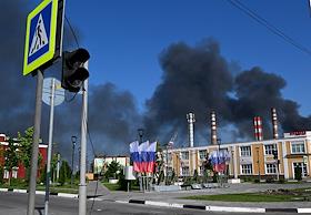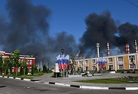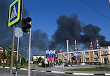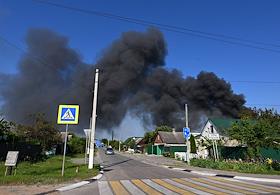Ситуация в Белгородской области во время проведения специальной военной операции Вооруженных Сил России на Украине. Жанровая фотография. Дым от пожара после обстрела.