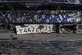 Ситуация в Белгородской области во время проведения специальной военной операции Вооруженных Сил России на Украине. Жанровая фотография. Автомобиль "ВАЗ 2109" со следами после обстрела.