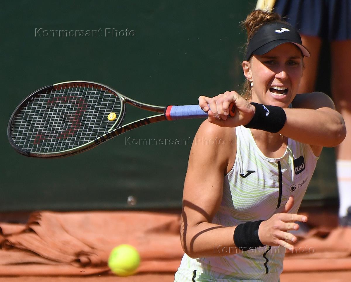 Открытый чемпионат Франции по теннису "Ролан Гаррос-2023" (Roland Garros). Бразильская теннисистка Беатрис Хаддад-Майя во время матча с российской теннисисткой Екатериной Александровой.
