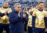 Футбольный матч 2-й лиги между командами "Ленинградец" (Ленинградская область) и "Спартак" (Кострома) на стадионе "Петровский". Команда "Ленинградец" во время церемонии награждения. Член совета директоров Группы ЛСР, генеральный директор Футбольного клуба "Ленинградец" Игорь Левит (справа) и главный тренер команды "Ленинградец" Сергей Кирьяков (слева) после матча.