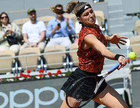 Открытый чемпионат Франции по теннису "Ролан Гаррос-2023" (Roland Garros). 1/4 финала. Российская теннисистка Анастасия Павлюченкова во время матча с чешской теннисисткой Каролиной Муховой.