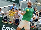 Открытый чемпионат Франции по теннису "Ролан Гаррос-2023" (Roland Garros). 1/4 финала. Российский теннисист Карен Хачанов во время матча с сербским теннисистом Новаком Джоковичем.