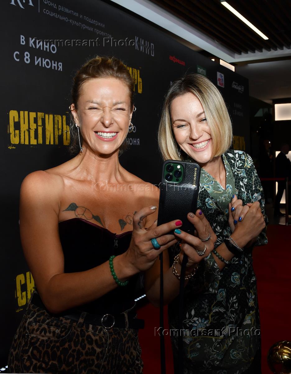 Premiere of the film "Bullfinch" directed by Boris Khlebnikov at the cinema "Karo 11 Oktyabr". Actresses Olga Efremova (left) and Yana Krainova (right) at the premiere.