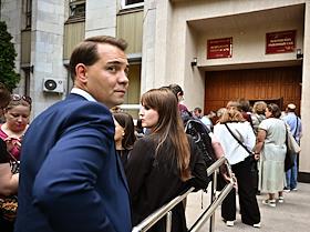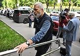 Первое заседание по делу председателя совета общества "Мемориал" (признано иностранным агентом и ликвидировано) Олега Орлова по статье о повторной дискредитации вооруженных сил России в Головинском районном суде. Журналист Дмитрий Муратов перед началом заседания.