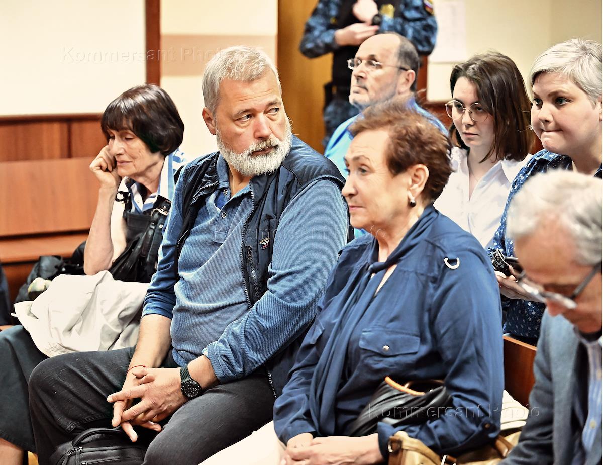 Первое заседание по делу председателя совета общества "Мемориал" (признано иностранным агентом и ликвидировано) Олега Орлова по статье о повторной дискредитации вооруженных сил России в Головинском районном суде. Журналист Дмитрий Муратов (в центре) во время заседания.