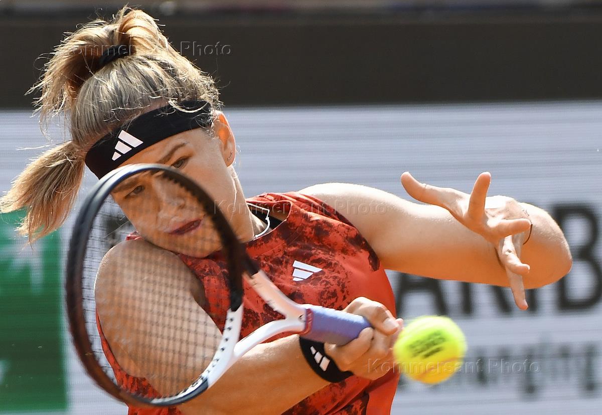Открытый чемпионат Франции по теннису "Ролан Гаррос-2023" (Roland Garros). Финал. Женщины. Чешская теннисистка Каролина Мухова во время матча с польской теннисисткой Игой Швентек.