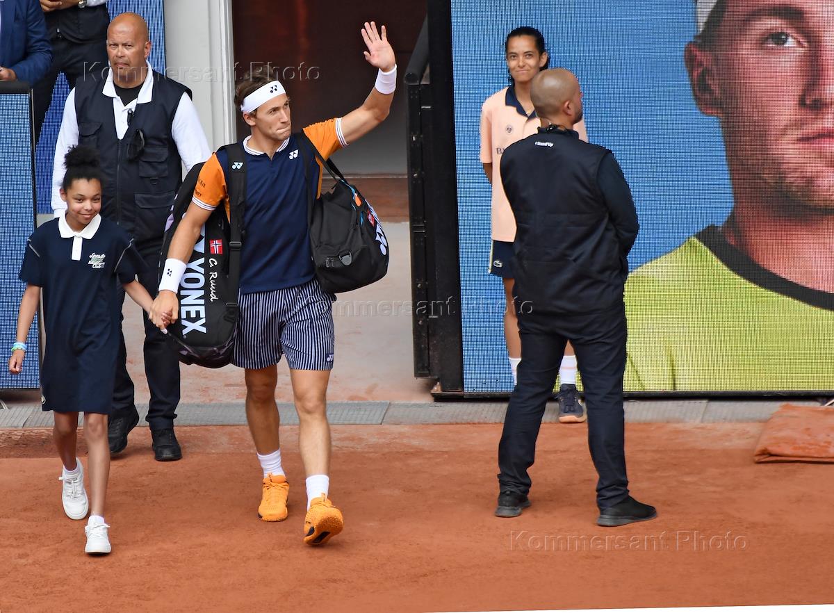 Открытый чемпионат Франции по теннису "Ролан Гаррос-2023" (Roland Garros). Мужчины. Финал. Норвежский теннисист Каспер Рууд перед началом матча против сербского теннисиста Новака Джоковича.