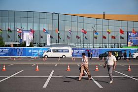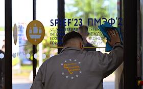 XXVI Петербургский международный экономический форум (ПМЭФ) 2023 в конгрессно-выставочном центре (КВЦ) "Экспофорум". Жанровая фотография.