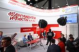 XXVI Петербургский международный экономический форум (ПМЭФ) 2023 в конгрессно-выставочном центре (КВЦ) "Экспофорум". Жанровая фотография. Студия радиостанции Коммерсантъ FM.