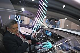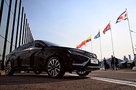 XXVI Петербургский международный экономический форум (ПМЭФ) 2023 в конгрессно-выставочном центре (КВЦ) "Экспофорум". Жанровая фотография. Автомобиль бренда LADA ("Лада") АО "АВТОВАЗ" - представительский седан LADA Aura.
