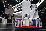XXVI Петербургский международный экономический форум (ПМЭФ) 2023 в конгрессно-выставочном центре (КВЦ) "Экспофорум". Жанровая фотография. Робот-продовец мороженого Монти (компания GBL Robotics) на стенде Мосгортранса.