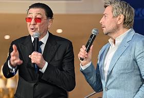 XXVI Петербургский международный экономический форум (ПМЭФ) 2023. Welcome party от "Русской медиагруппы" в отеле Lotte в ресторане The Lounge. Певцы Григорий Лепс (слева) и Николай Басков (справа) на мероприятии.