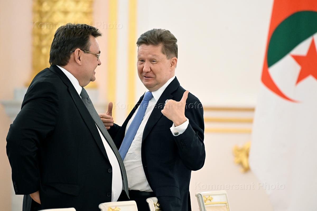 Встреча президента России Владимир Путина и президента Алжира Абдельмаджида Теббуна в Кремле. Министр юстиции России Константин Чуйченко (слева) и председатель правления компании "Газпром" Алексей Миллер (справа) перед началом встречи.