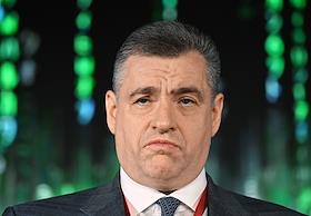 XXVI Петербургский международный экономический форум (ПМЭФ) 2023. Презентация нейросети "Жириновский". Запуск первого политического алгоритма. Председатель партии Либерально-демократическая партия России (ЛДПР) Леонид Слуцкий во время презентации.