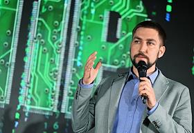 XXVI Петербургский международный экономический форум (ПМЭФ) 2023. Презентация нейросети "Жириновский". Запуск первого политического алгоритма. Генеральный директор компании "Лаборатория Наносемантика", разработчик проекта Станислав Ашманов во время презентации.