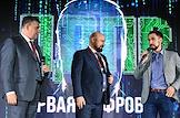 XXVI Петербургский международный экономический форум (ПМЭФ) 2023. Презентация нейросети "Жириновский". Запуск первого политического алгоритма. Слева направо: председатель партии Либерально-демократическая партия России (ЛДПР) Леонид Слуцкий, куратор проекта, первый заместитель председателя комитета Государственной думы России по строительству и жилищно-коммунальному хозяйству Владимир Кошелев и генеральный директор компании "Лаборатория Наносемантика", разработчик проекта Станислав Ашманов во время презентации.
