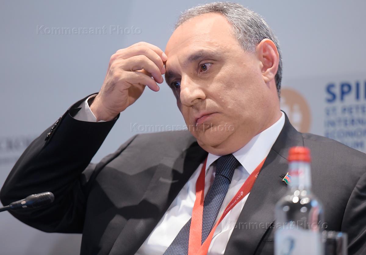 XXVI Петербургский международный экономический форум (ПМЭФ) 2023 в конгрессно-выставочном центре (КВЦ) "Экспофорум". Сессия "Бизнес под защитой: дальнейшее формирование благоприятного делового климата". Генеральный прокурор Азербайджана Кямран Байрам оглы Алиев во время сессии.