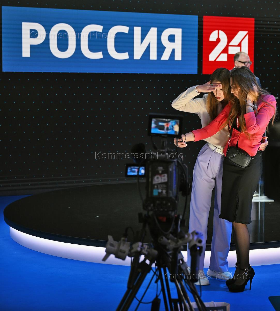 XXVI Петербургский международный экономический форум (ПМЭФ) 2023 в конгрессно-выставочном центре (КВЦ) "Экспофорум". Жанровая фотография. Площадка Российского общества "Знание".