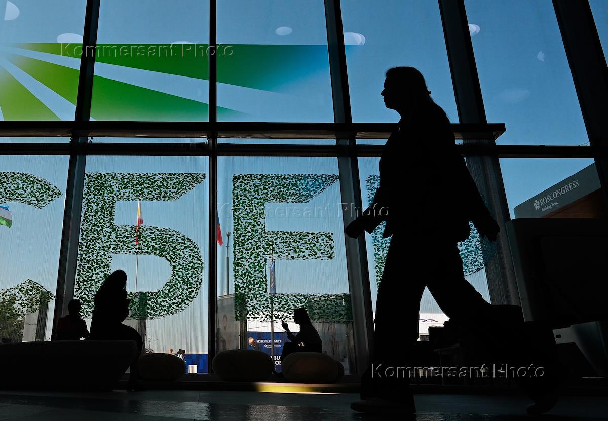 XXVI Петербургский международный экономический форум (ПМЭФ) 2023 в конгрессно-выставочном центре (КВЦ) "Экспофорум". Жанровая фотография.
