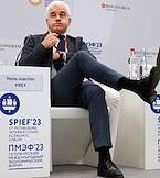 XXVI Петербургский международный экономический форум (ПМЭФ) 2023 в конгрессно-выставочном центре (КВЦ) "Экспофорум". Сессия "Диалоги культур в эпоху глобальных изменений". Художественный руководитель Фонда "Талант и успех" Ханс-Йоахим Фрай во время сессии.