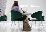 XXVI Петербургский международный экономический форум (ПМЭФ) 2023 в конгрессно-выставочном центре (КВЦ) "Экспофорум". Жанровая фотография. Площадка Российского общества "Знание".