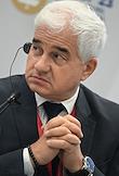 XXVI Петербургский международный экономический форум (ПМЭФ) 2023 в конгрессно-выставочном центре (КВЦ) "Экспофорум". Сессия "Диалоги культур в эпоху глобальных изменений". Специальный представитель президента России по международному культурному сотрудничеству Михаил Швыдкой во время сессии.