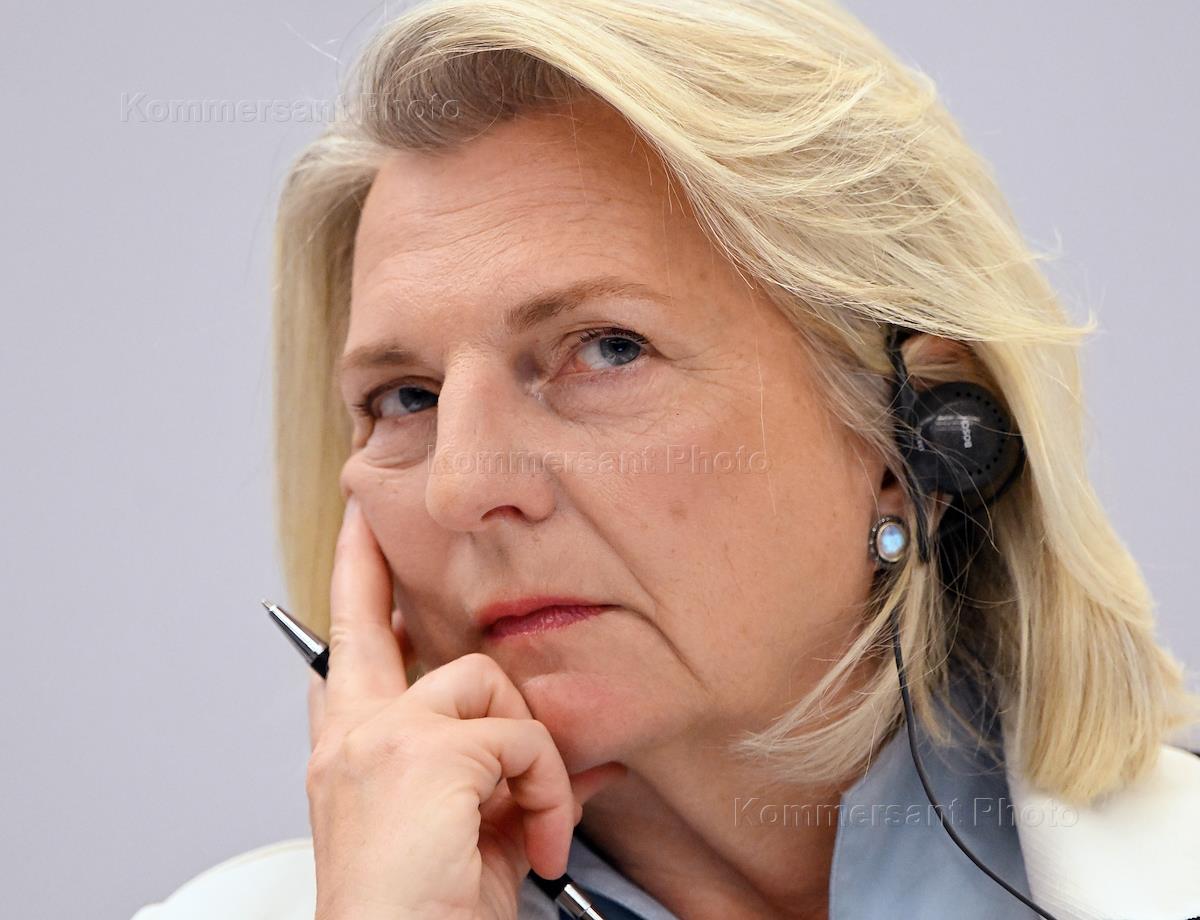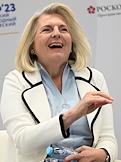XXVI Петербургский международный экономический форум (ПМЭФ) 2023 в конгрессно-выставочном центре (КВЦ) "Экспофорум". Сессия "Диалоги культур в эпоху глобальных изменений". Член совета директоров - независимый директор ПАО "Роснефть", бывший министр иностранных дел Австрии Карин Кнайсль во время сессии.