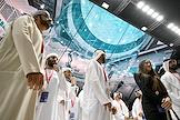 XXVI Петербургский международный экономический форум (ПМЭФ) 2023 в конгрессно-выставочном центре (КВЦ) "Экспофорум". Жанровая фотография. Участники форума у павильона Объединенных Арабских Эмиратов (ОАЭ). Представители ОАЭ показали участникам и посетителям мероприятия традиционный мужской танец "Аль-Айяла" с бамбуковой тростью.