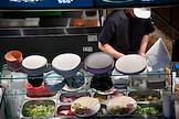 Gastro-quarter "Three stations. Depot". Genre photography. A cook at the counter of a restaurant corner.