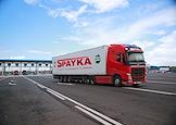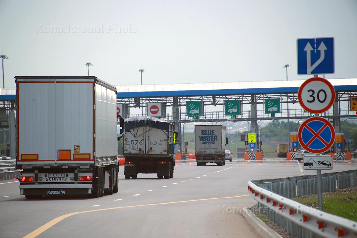 Жанровая фотография. Грузовой автомобиль экспортной торговой компании Spayka на пункте оплаты объездного участка федеральной трассы М-4 "Дон" в обход Ростова-на-Дону.