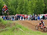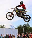 Чемпионат и первенство города Томска по мотокроссу. Участники чемпионата во время прохождения этапа трассы соревнования.