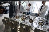 Пресс-тур по объектам национального проекта "Наука и университеты" и научно-популярного маршрута, созданного по инициативе "Научно-популярный туризм" Десятилетия науки и технологий в Нижегородском государственном университете (ННГУ) имени Н.И.Лобачевского. Участники пресс-тура посетили научно-исследовательские лаборатории на факультетах и в институтах Университета. Жанровая фотография.