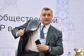 78-я внеочередная конференция Московского городского отделения ЛДПР, на которой будет принято решение о выдвижении кандидата от партии на предстоящих в сентябре выборах мэра Москвы, в летнем кинотеатре парка Фили. Председатель партии Либерально-демократическая партия России (ЛДПР) Леонид Слуцкий (слева) во время конференции.