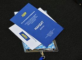 78-я внеочередная конференция Московского городского отделения ЛДПР, на которой будет принято решение о выдвижении кандидата от партии на предстоящих в сентябре выборах мэра Москвы, в летнем кинотеатре парка Фили. Жанровая фотография. Мандат участника конференции.