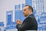 78-я внеочередная конференция Московского городского отделения ЛДПР, на которой будет принято решение о выдвижении кандидата от партии на предстоящих в сентябре выборах мэра Москвы, в летнем кинотеатре парка Фили. Председатель партии Либерально-демократическая партия России (ЛДПР) Леонид Слуцкий (справа) во время конференции.