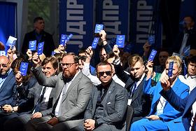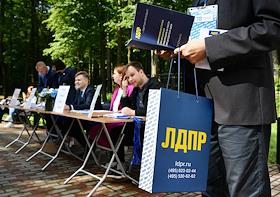 78-я внеочередная конференция Московского городского отделения ЛДПР, на которой будет принято решение о выдвижении кандидата от партии на предстоящих в сентябре выборах мэра Москвы, в летнем кинотеатре парка Фили. Голосование участников конференции.