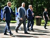 78-я внеочередная конференция Московского городского отделения ЛДПР, на которой будет принято решение о выдвижении кандидата от партии на предстоящих в сентябре выборах мэра Москвы, в летнем кинотеатре парка Фили. Председатель партии Либерально-демократическая партия России (ЛДПР) Леонид Слуцкий (в центре) и член ЛДПР, заместитель председателя Государственной думы России Борис Чернышов (слева) перед началом конференции. Конференция выдвинула Бориса Чернышова кандидатом на выборах мэра Москвы.
