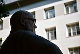 Здание Национального медицинского исследовательского центр имени академика Е. Н. Мешалкина. Памятник академику Е. Н. Мешалкину у здания.