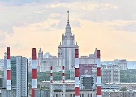 Виды Москвы. Жанровая фотография. Трубы на фоне Главного здания Московского государственного университета (МГУ) имени М.в. Ломоносова.