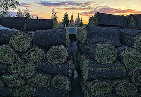 Виды Москвы. Жанровая фотография. Рулоны травы для укладки газона в парке "Зарядье".