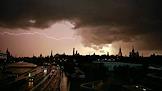 Виды Москвы во время грозы. Московский Кремль, ландшафтный парк "Зарядье" и Москворецкая набережная.