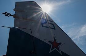 XI Международный военно-морской салон "МВМС-2023". Жанровая фотография. Посадка самолета МиГ-29 пилотажной группы "Стрижи" на аэродроме Ленинградской армии ВВС и ПВО в поселке Левашово после показательных выступлений на "МВМС-2023" в Кронштадте.